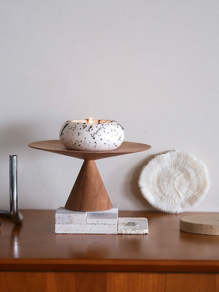 Handmade Cherry Solid Wood Cake Tray Round Storage